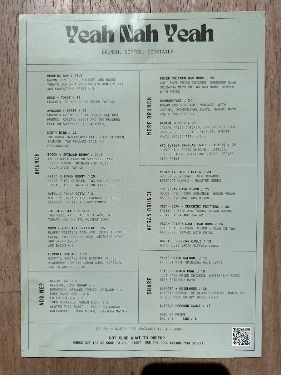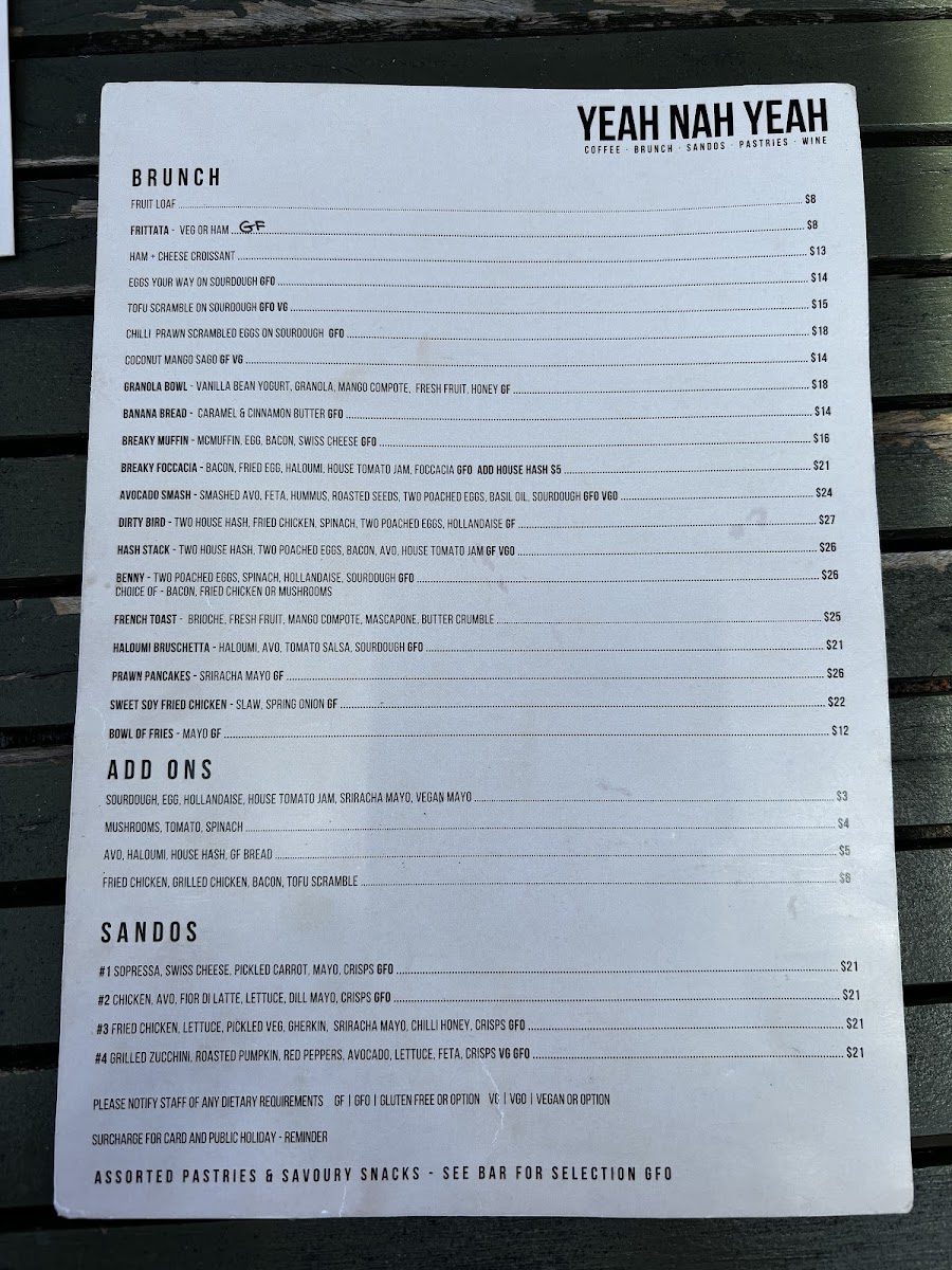 Whether you're stopping by for a cozy breakfast or a refreshing drink, Yeah Nah Yeah is sure to impress with its inviting atmosphere and memorable flavors.